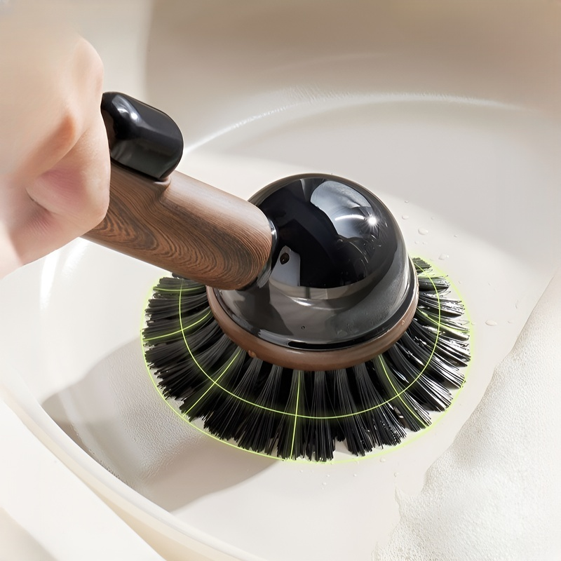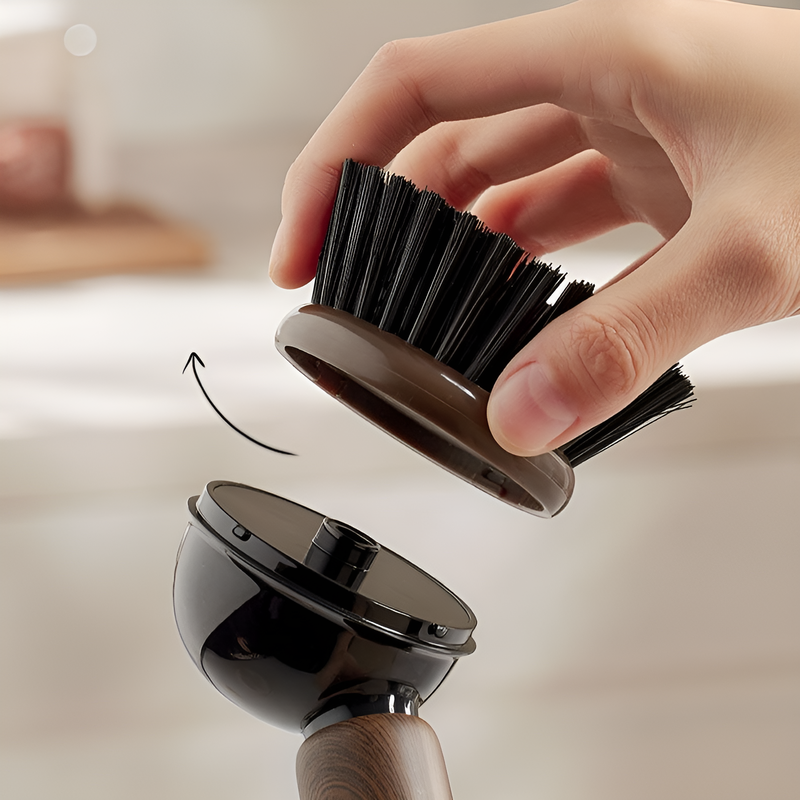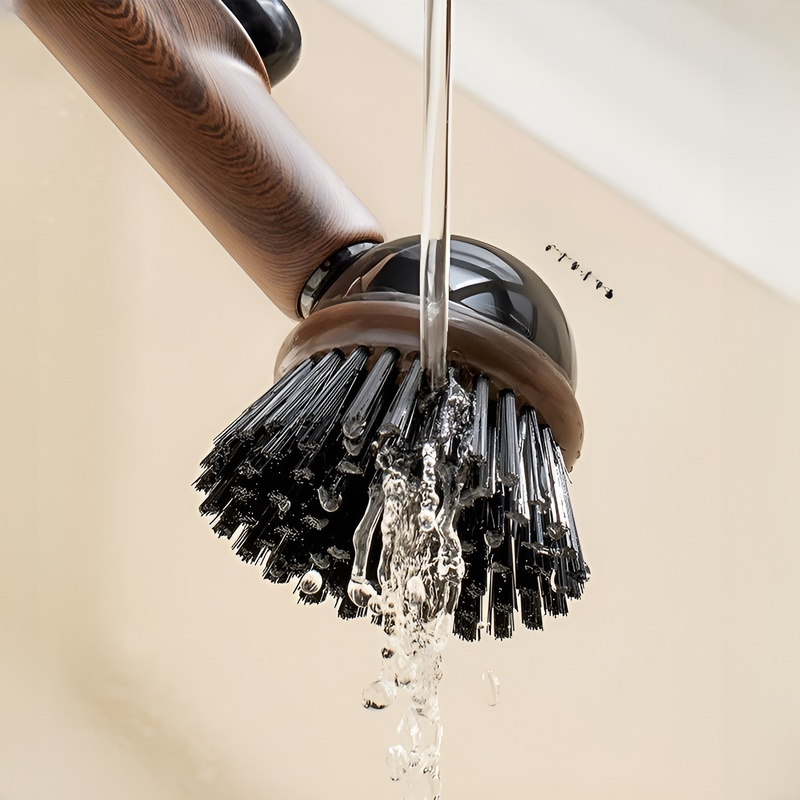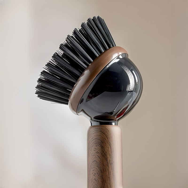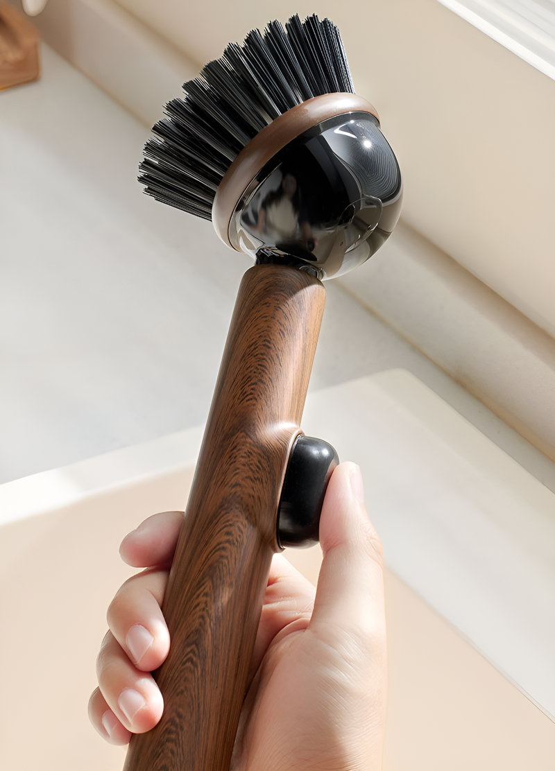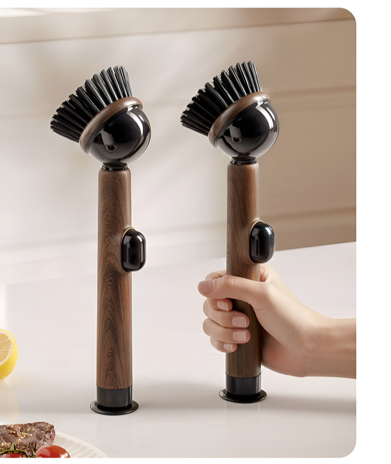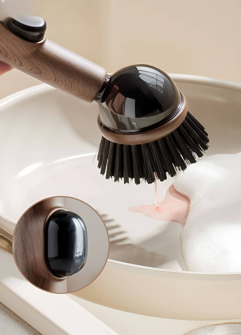 木目調吸盤付き長柄鍋用洗浄ブラシ 液体注入型 キッチン用